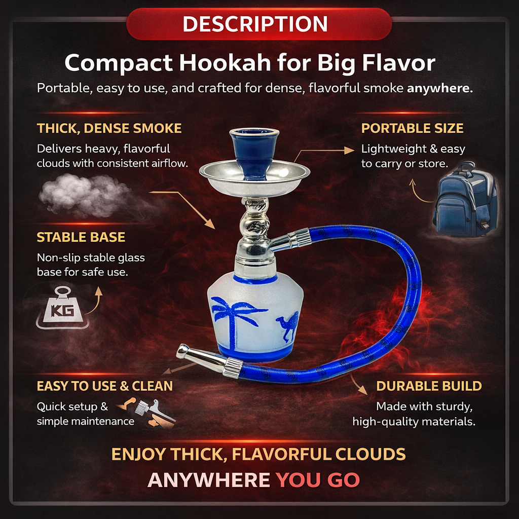 Compact in size, powerful in performance. The Small Hookah is engineered to deliver thick, smooth, and flavorful smoke with every session. Designed for both beginners and experienced users, it provides consistent airflow and rich flavor without the bulk of a full-size setup.